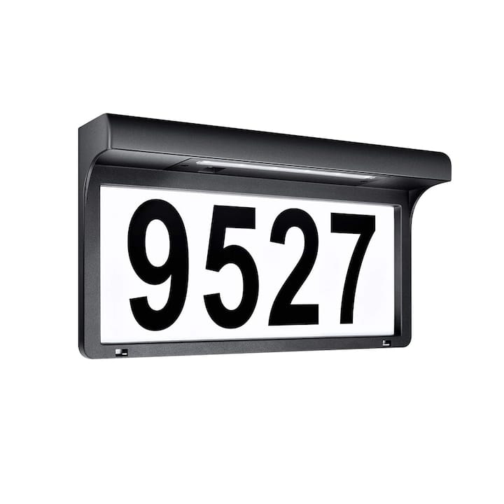 Numar de casa/poarta/usa cu iluminare LED NEXTLY, stikere autocolante cu litere si cifre, incarcare solara, aprindere automata, materiale premium, waterproof, 22.5x17.5, negru