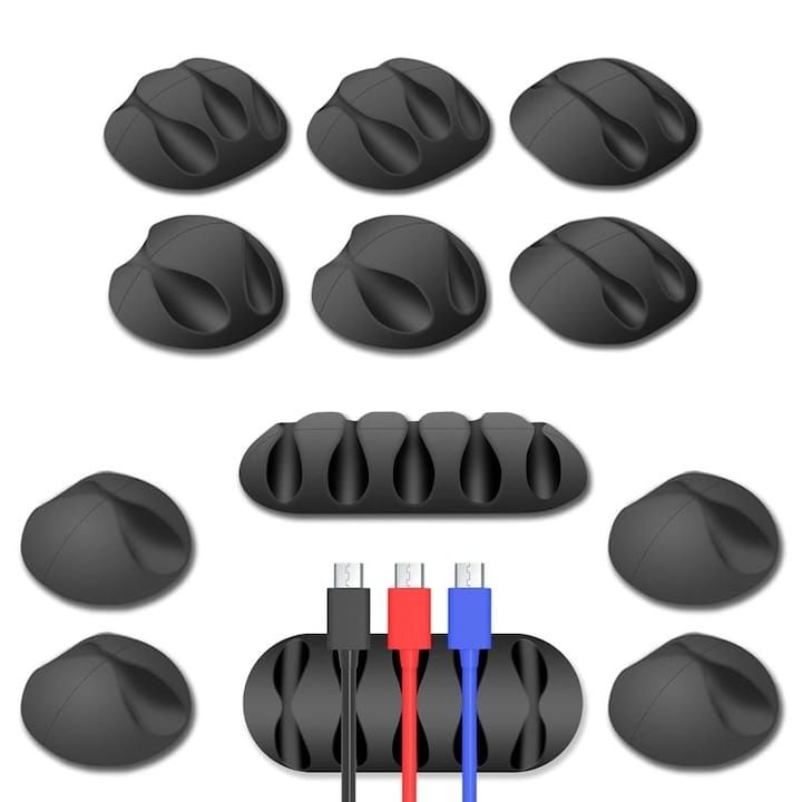 Set 10 x organizator cabluri NEXTLY, 5 marimi, suporturi autoadezive pentru diverse tipuri de cabluri, prindere pe diverse suprafete, negru