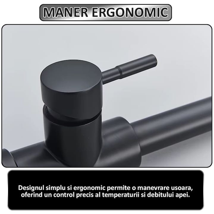 Designul simplu si ergonomic al butonului permite o manevrare usoara, oferind un control precis al temperaturii si debitului apei.