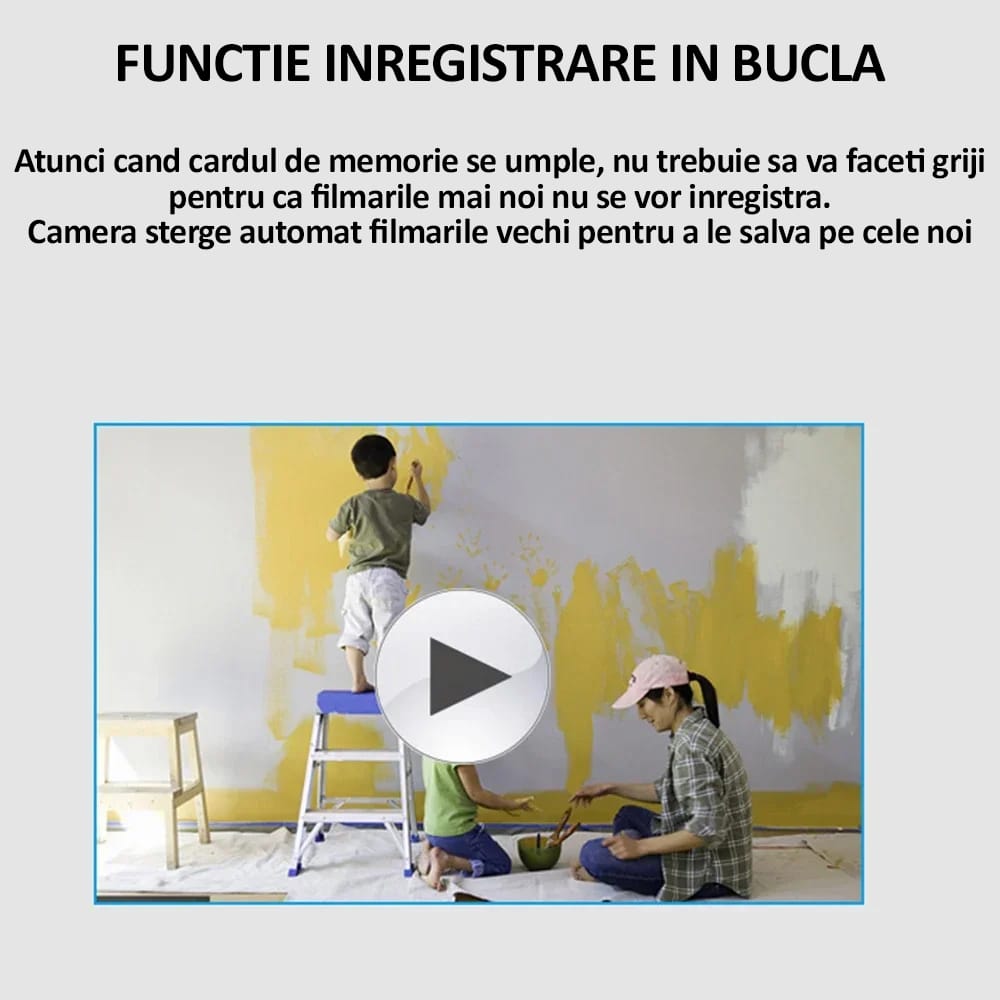 - Siguranta continua: Functia de detectare a miscarii si inregistrarea in bucla garanteaza ca esti mereu informat si protejat.