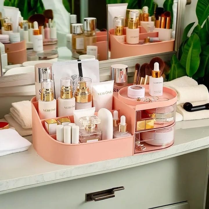 Acest organizator nu este destinat doar produselor cosmetice. Compartimentele sale bine gandite permit depozitarea eficienta