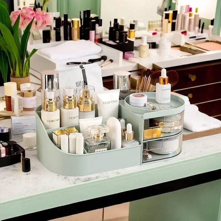 Acest organizator nu este destinat doar produselor cosmetice. Compartimentele sale bine gandite permit depozitarea eficienta