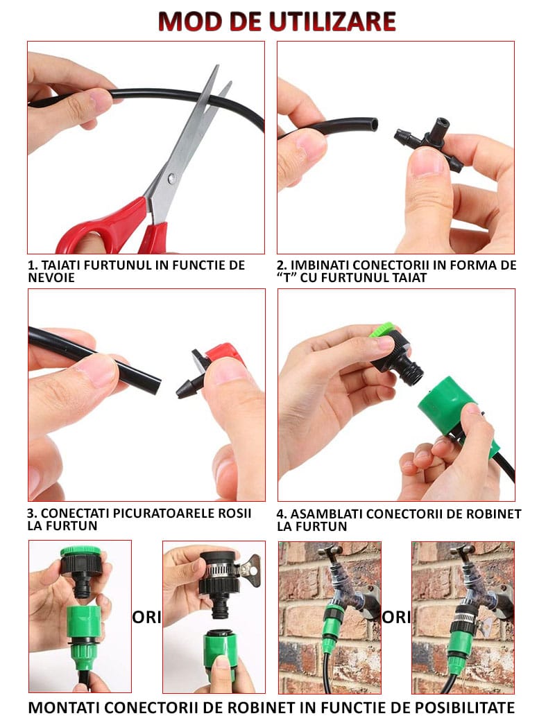 3. Conectati picuratoarele rosii la furtun